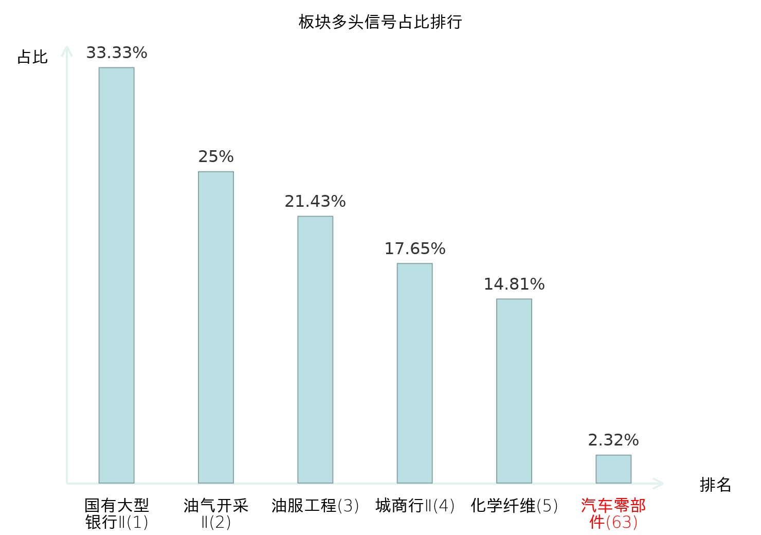 从主力宝信号数据分析,祥鑫科技所属的汽车零部件板块中共有6只股票发出主力多头信号,主力多头信号占比在全行业中排名第63位,较昨日下降15位。较高的排名表明主力当日买入意愿相对较强,但排名下降可能反映了主力对该板块态度的微调。全市场所有行业板块中,国有大型银行Ⅱ板块的主力多头信号占比最高,位居第一。国有大型银行Ⅱ板块名次提升最快,较昨日上升124位。这些变动揭示了不同行业间主力资金动向的变化,为投资者提供了关于市场情绪和潜在投资机会的重要线索。