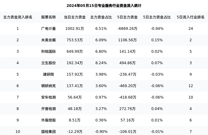 从主力资金流向来看,专业服务行业今日主力资金流入4.05亿元,在所有申万二级行业中排名:71/131。