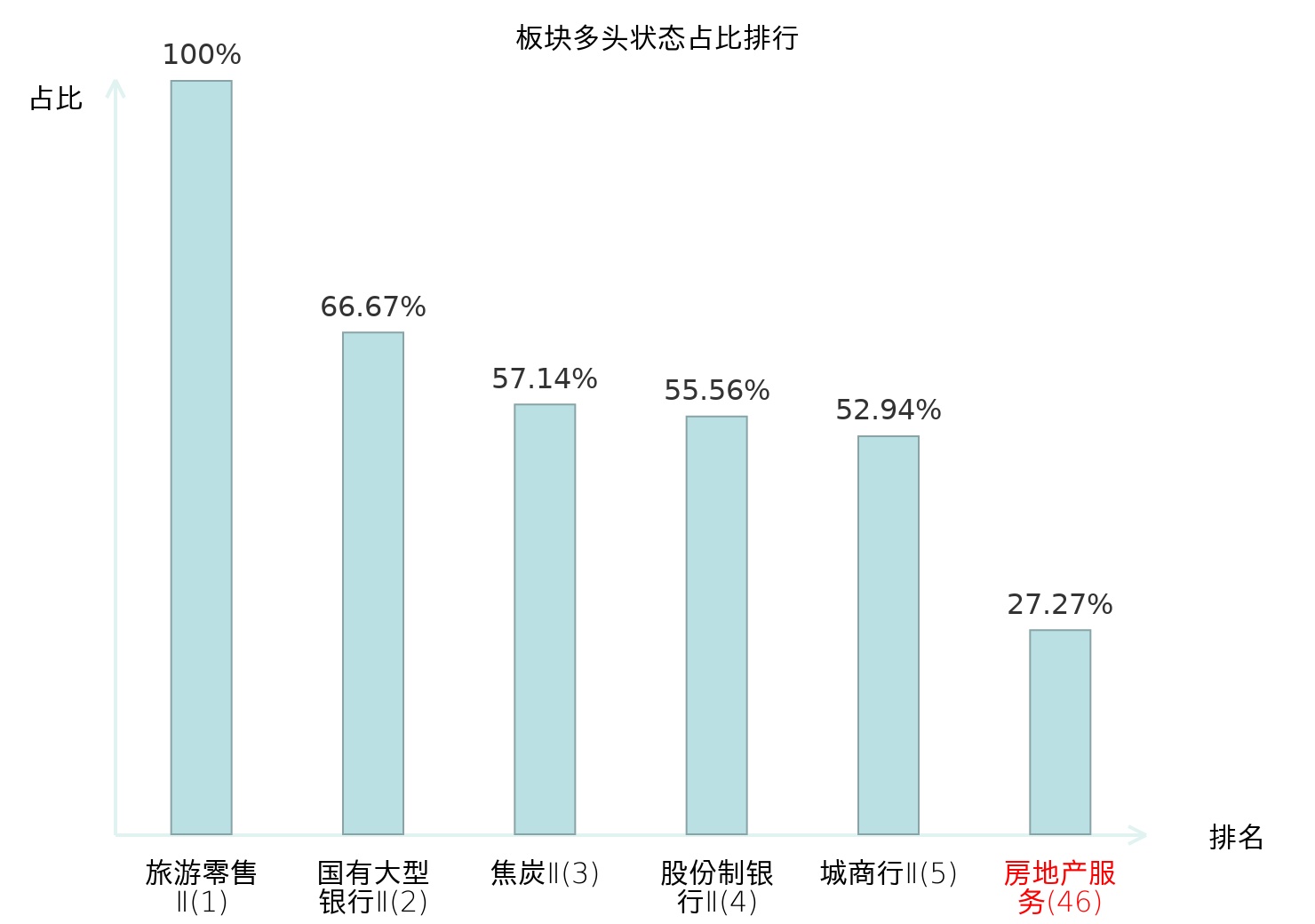 全市场所有行业板块中主力多头状态占比排名中,旅游零售Ⅱ板块位居第一。其他家电Ⅱ板块名次提升最快,较昨日上升101位。