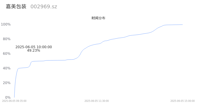002969嘉美包装2025年06月05日成交206.02万手,成交金额8.24亿,相较昨日放量156.91万手,换手率21.69%,成交活跃。