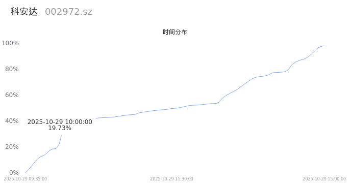 根据成交分布分析,该股票当天放量成交,成交清淡。时间上看,早盘前半小时成交量占据当天总成交量的19.73%;价格上看,成交呈现中间峰。成交分布分析主要研究股票成交的分布特性,不具有预测功能,请知悉。