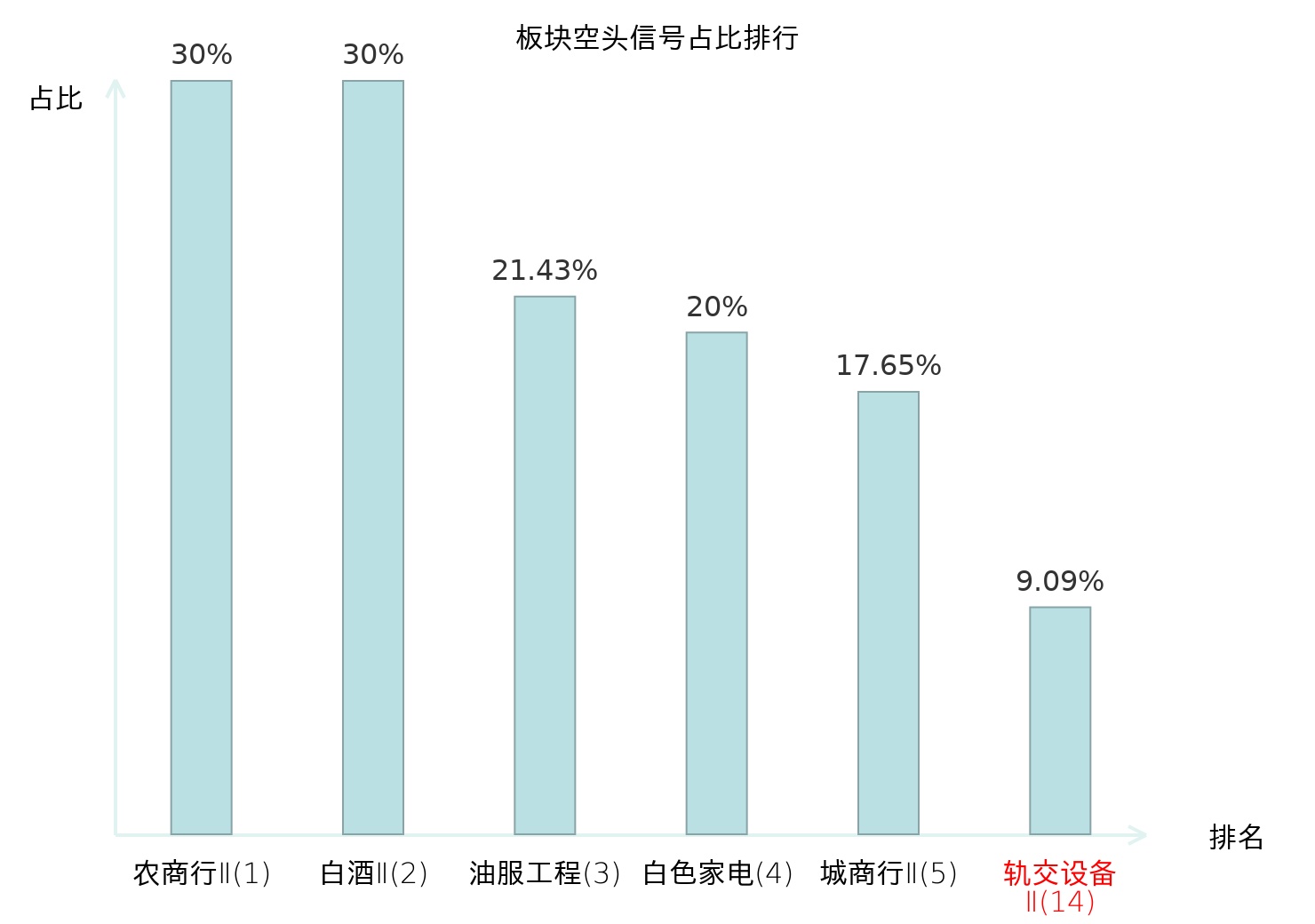 全市场所有行业板块中主力空头信号占比排名中,农商行Ⅱ板块位居第一。消费电子板块名次提升最快,较昨日上升95位。