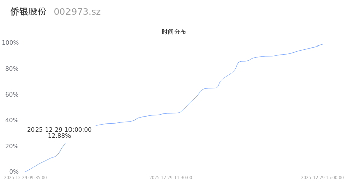002973侨银股份2025年12月29日成交3.17万手,成交金额4192.32万,相较昨日放量1.05万手,换手率1.42%,成交清淡。
