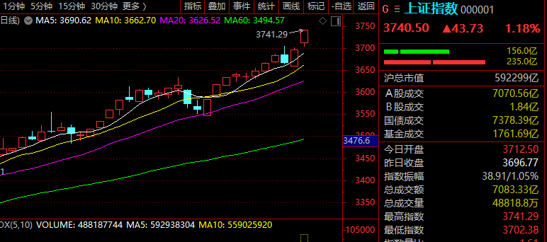 今日(8月10日)早盘,A股继续强势上攻,上证指数高开高走创10年来新高;北证50则创历史新高,深证成指、创业板指、科创50等重要股指也均创阶段性新高。超4500只个股上涨,成交呈进一步放大趋势。