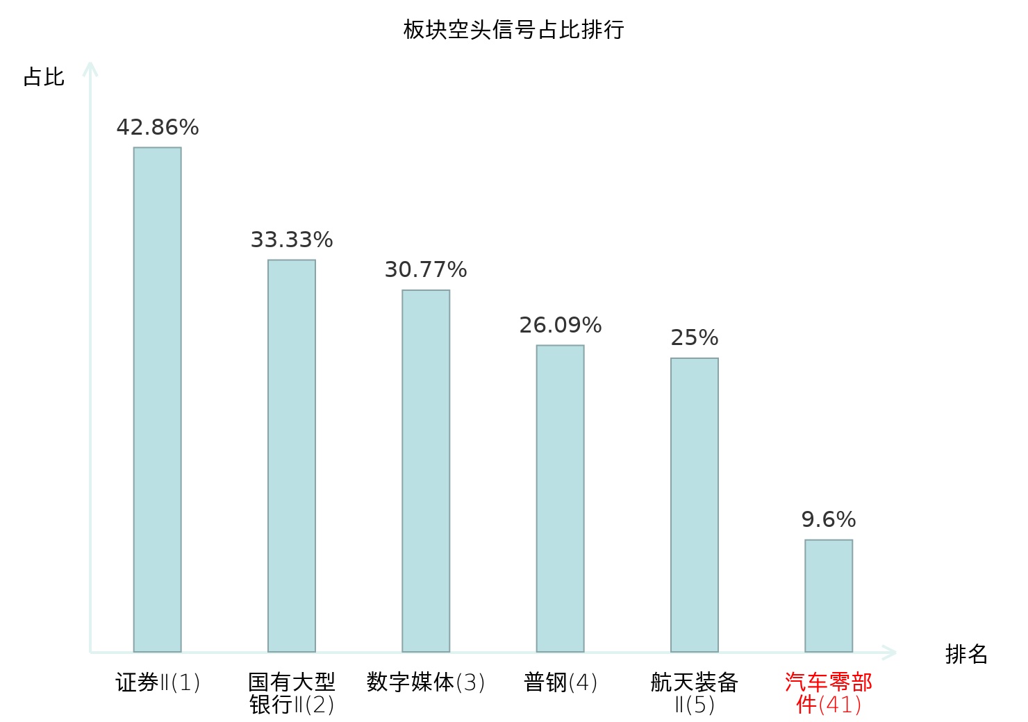 从主力宝信号数据分析,瑞玛精密所属的汽车零部件板块中共24只股票发出主力空头信号,主力空头信号占比在全行业中排名第41位,较昨日上升11位。排名越高说明主力当日卖出意愿越强,此次排名上升可能反映了主力对汽车零部件板块态度的转变。全市场所有行业板块中主力空头信号占比排名中,证券Ⅱ板块位居第一。证券Ⅱ板块名次提升最快,较昨日上升127位。这些变动揭示了不同行业间主力资金偏好变化的趋势,为投资者提供了重要的市场情绪和投资机会参考。