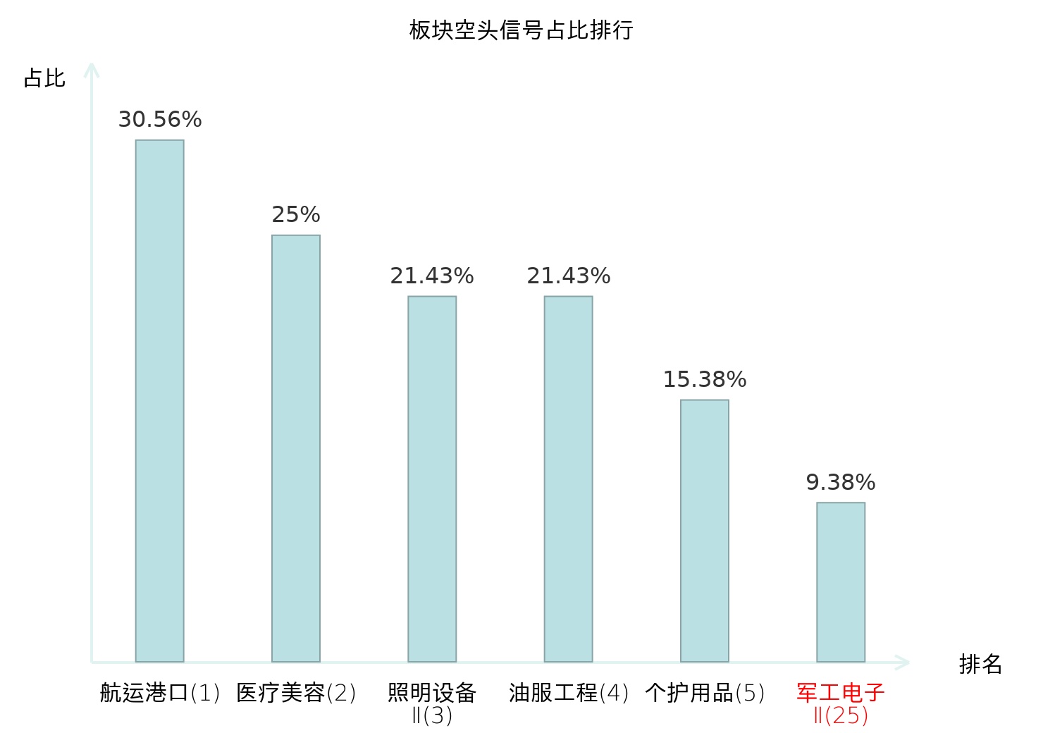 全市场所有行业板块中主力空头信号占比排名中,航运港口板块位居第一。航运港口板块名次提升最快,较昨日上升127位。