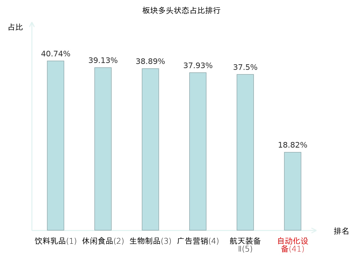 全市场所有行业板块中主力多头状态占比排名中,饮料乳品板块位居第一。国有大型银行Ⅱ板块名次提升最快,较昨日上升71位。