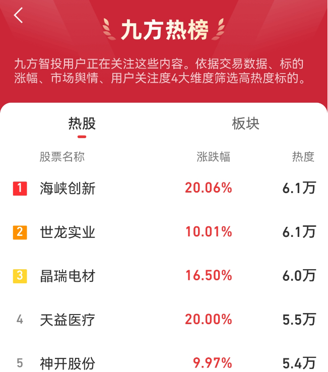 九方智投:海峡创新世龙实业晶瑞电材天益医疗神开股份