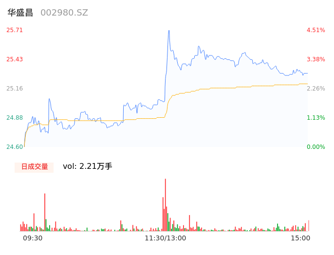 05月14日,华盛昌收报25.31,股价涨幅2.89%,成交金额5574.41万元,换手率3.08%。
