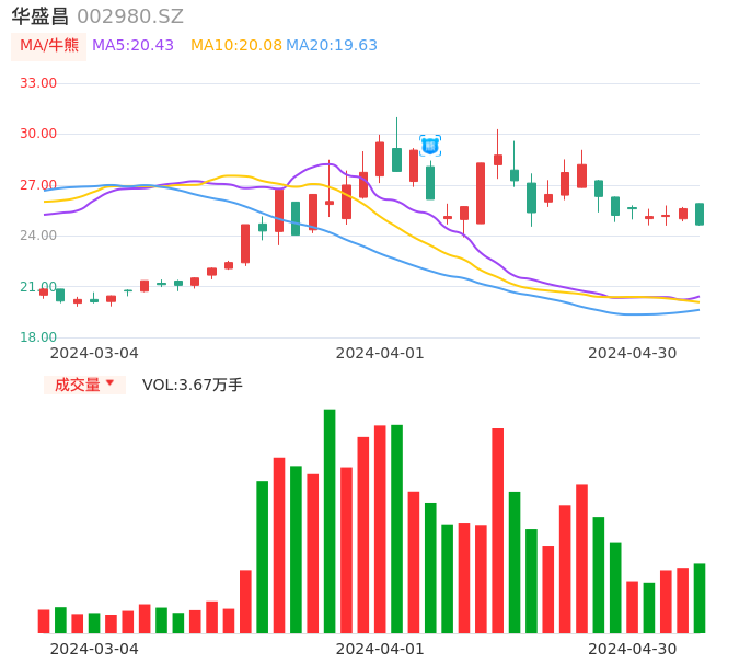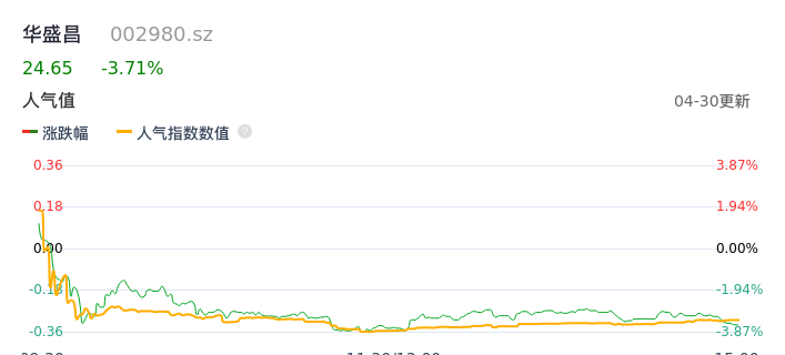 04月30日,华盛昌收报24.65,股价涨幅-3.71%,成交金额9140.57万元,换手率5.11%。