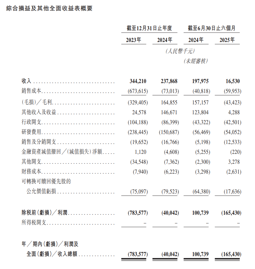 对于亏损,真实生物表示,2023年的净亏损主要由于(i)真实生物鉴于COVID-19的情况考虑到产品的到期日及适销性,对制成品作出大幅存货撇减,因而产生毛损;(ii)真实生物的核心产品及其他候选药物产生重大研发费用;(iii)年内产生行政开支;及(iv)可转换可赎回优先股的公允价值亏损。2024年净亏损减少,主要由于同年真实生物因存货撇减金额减少而录得毛利。而2025年上半年的亏损主要归因于(i)真实生物的核心产品及其他候选药物产生大量研发开支;(ii)存货撇减产生毛损;及(iii)期内产生行政开支。