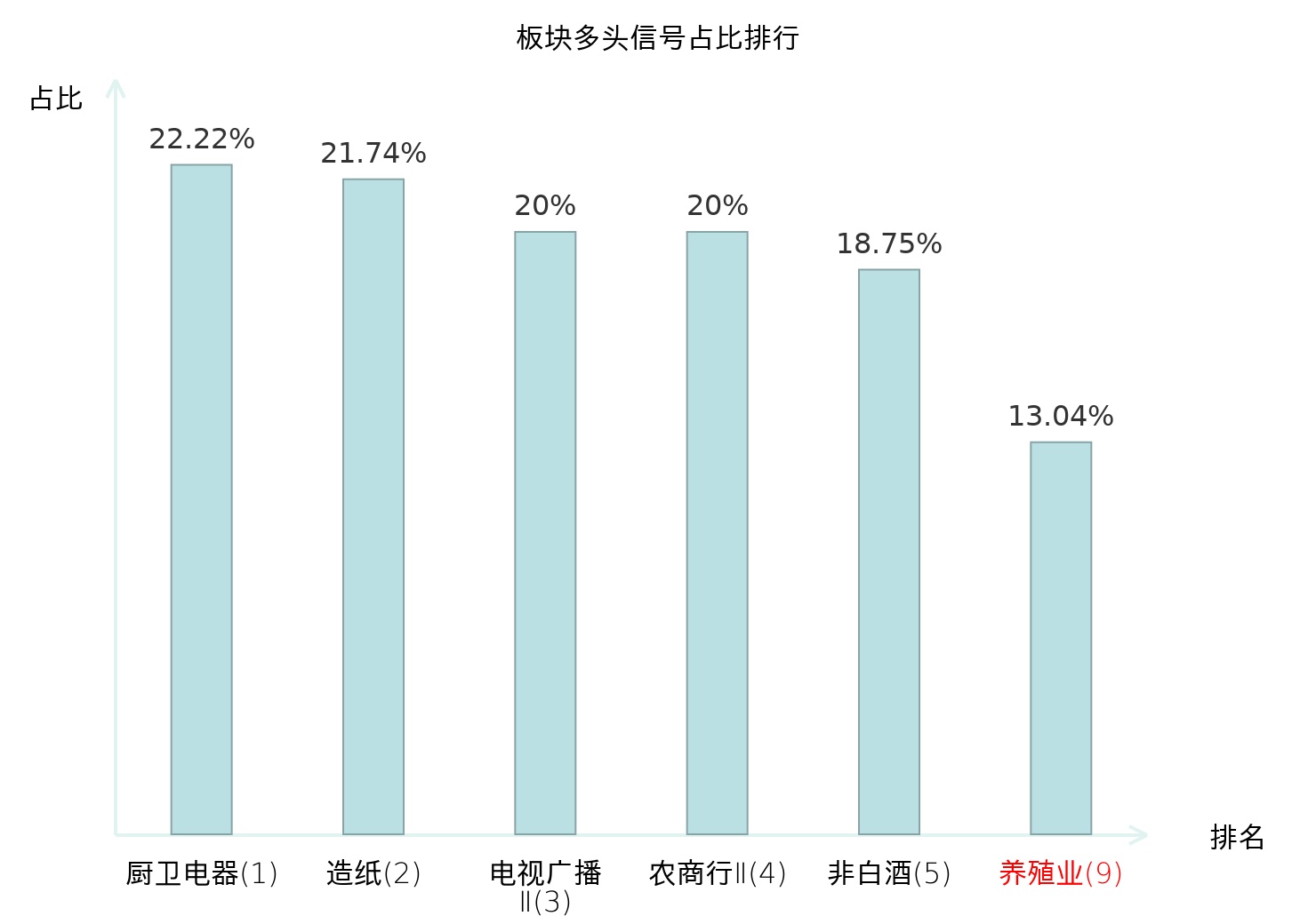 全市场所有行业板块中主力多头信号占比排名中,厨卫电器板块位居第一。厨卫电器板块名次提升最快,较昨日上升115位。