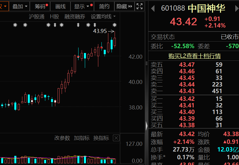 根据中国神华三季报,2025年前三季度,公司实现营业收入2131.5亿元,同比下降16.6%;煤炭销售量、售电量及平均销售价格下降导致相关业务收入下降;归母净利润为390.5亿元,同比下降10%。