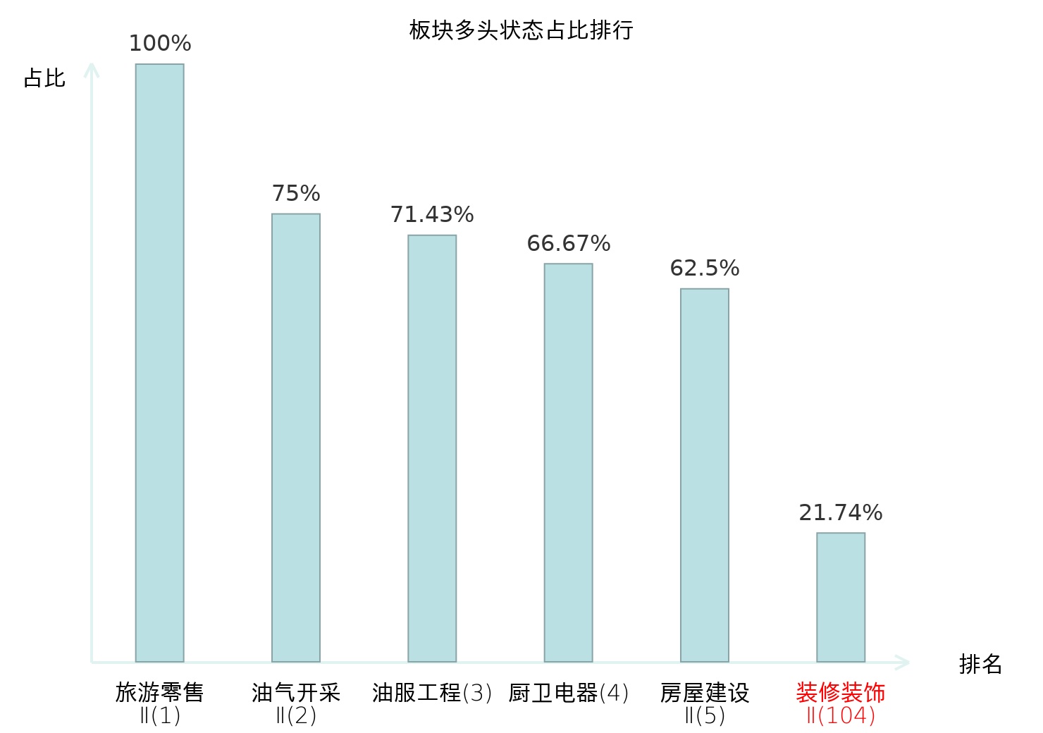 全市场所有行业板块中主力多头状态占比排名中,旅游零售Ⅱ板块位居第一。焦炭Ⅱ板块名次提升最快,较昨日上升58位。