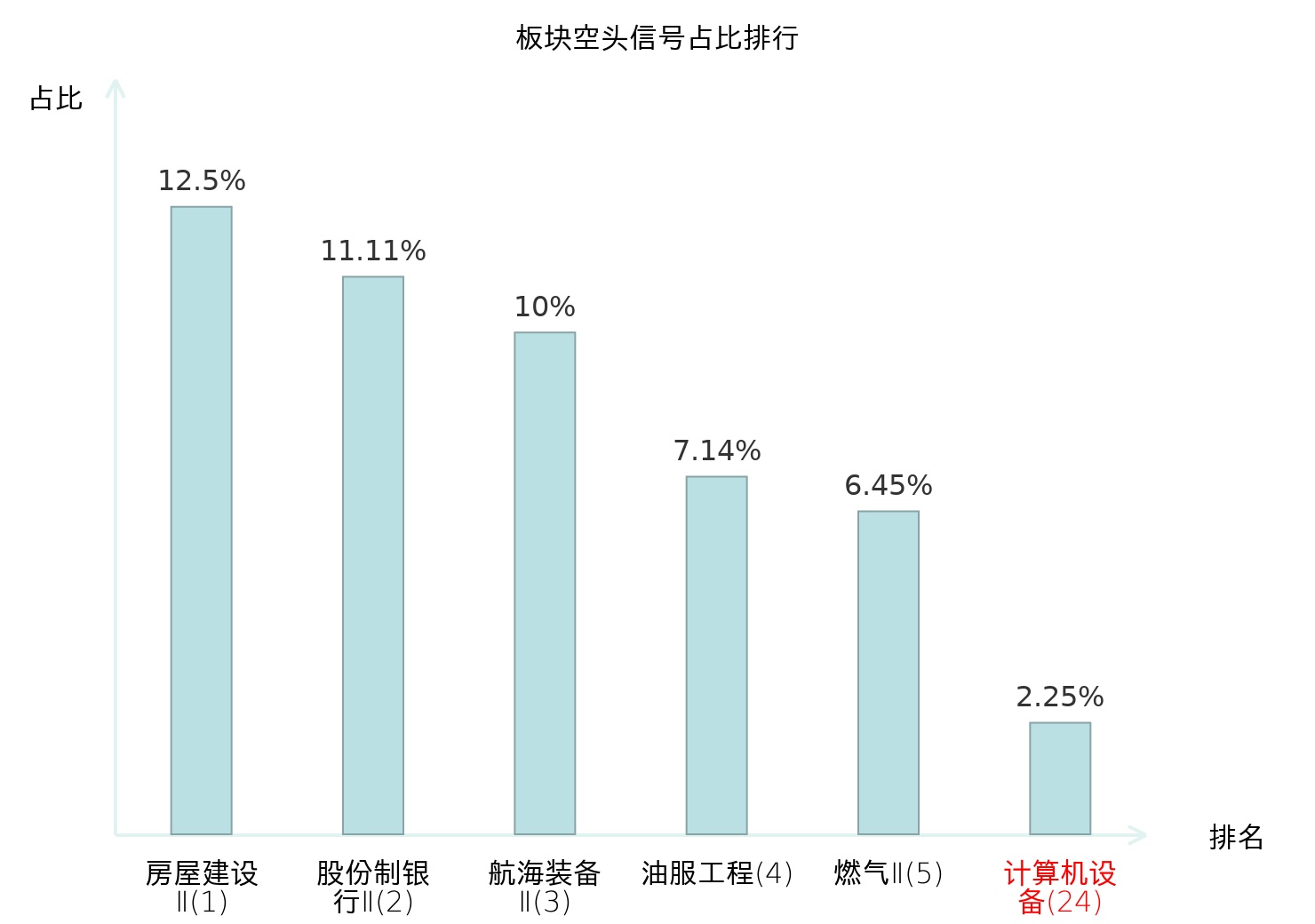 全市场所有行业板块中主力空头信号占比排名中,房屋建设Ⅱ板块位居第一。农化制品板块名次提升最快,较昨日上升112位。