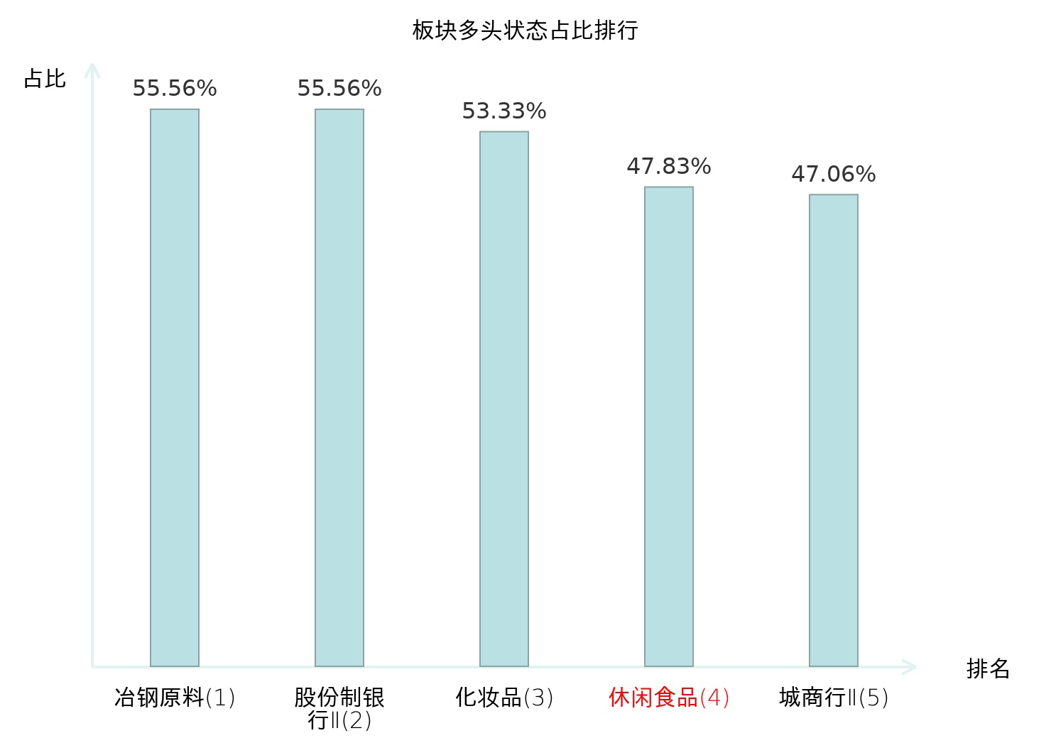 全市场所有行业板块中主力多头状态占比排名中,冶钢原料板块位居第一。其他家电Ⅱ板块名次提升最快,较昨日上升105位。