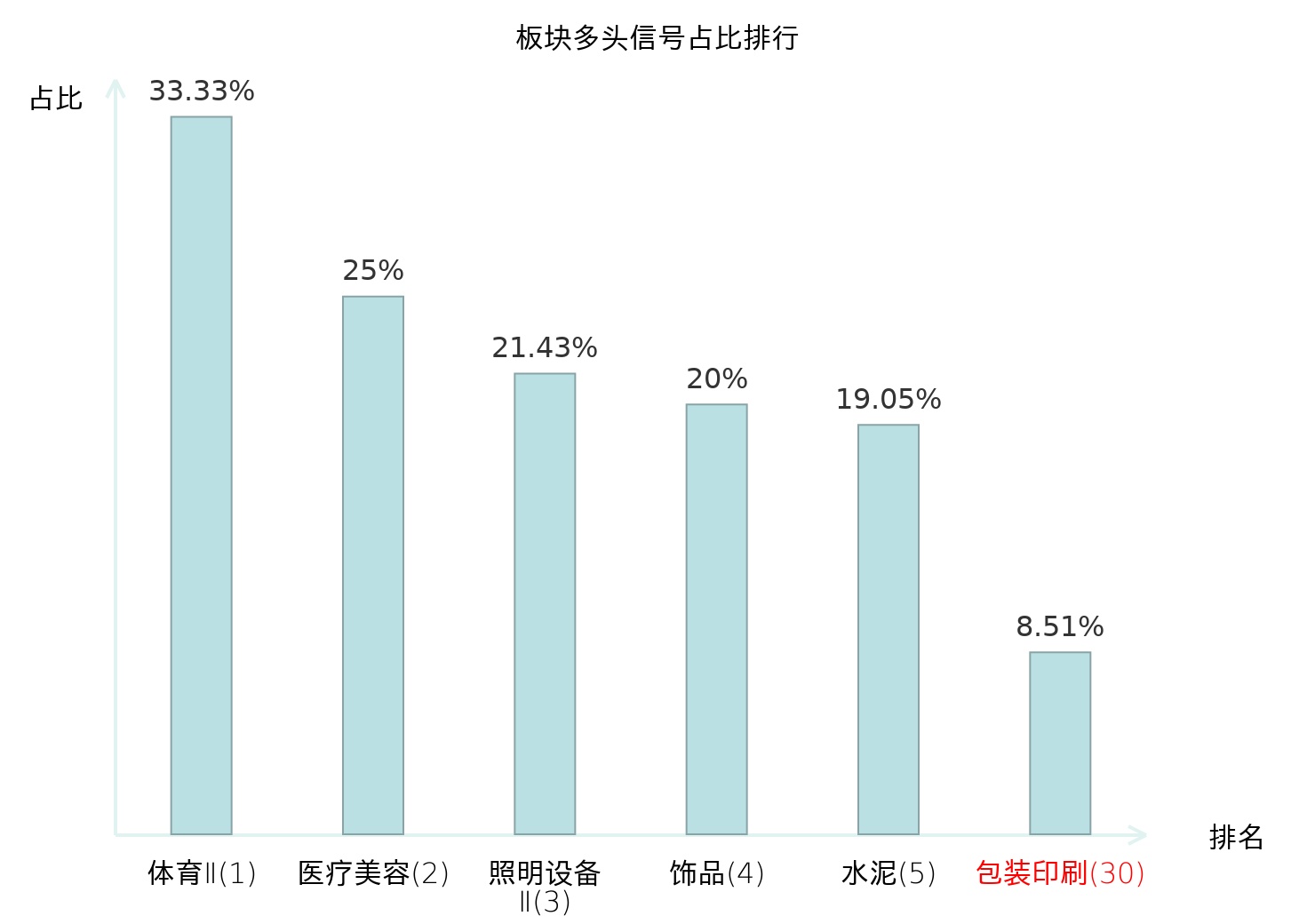 全市场所有行业板块中主力多头信号占比排名中,体育Ⅱ板块位居第一。医疗美容板块名次提升最快,较昨日上升126位。
