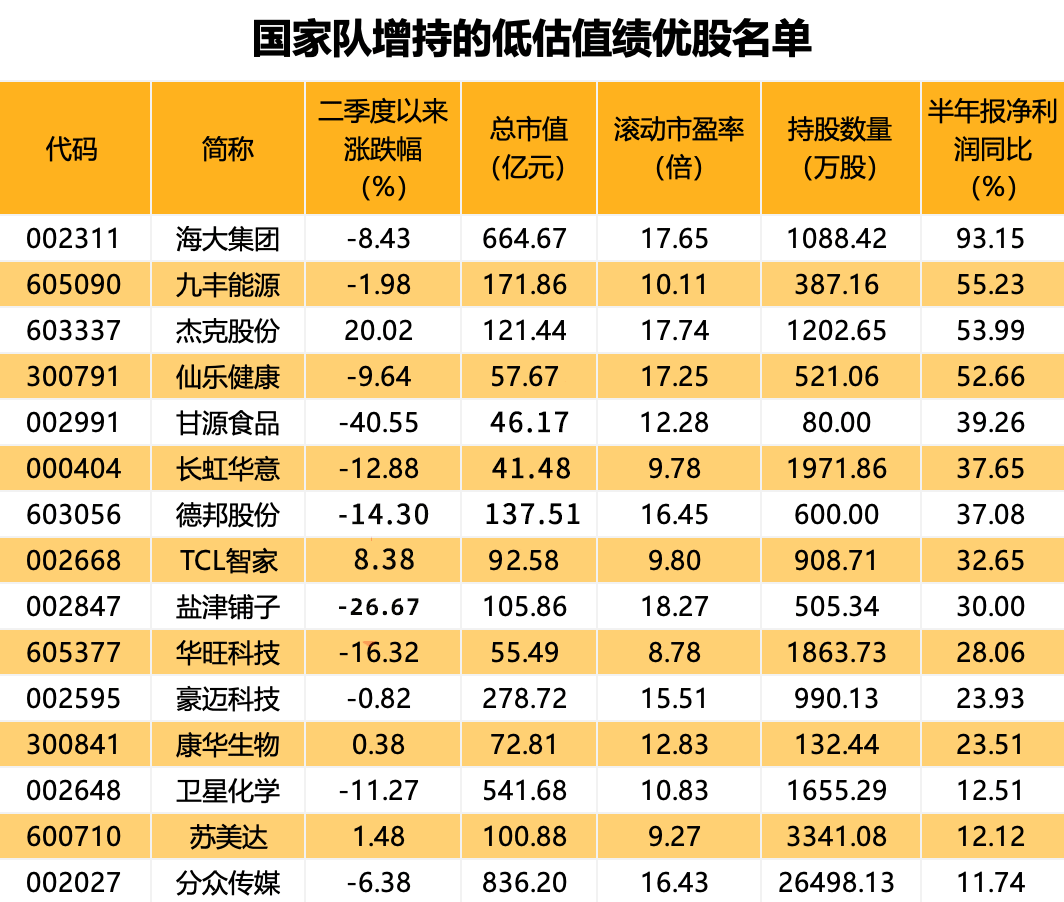 从行情表现来看,二季度获得国家队增持或新进的49股中,鹏鼎控股、胜宏科技、百亚股份、杰克股份的股价涨幅居前,二季度以来均涨超20%。