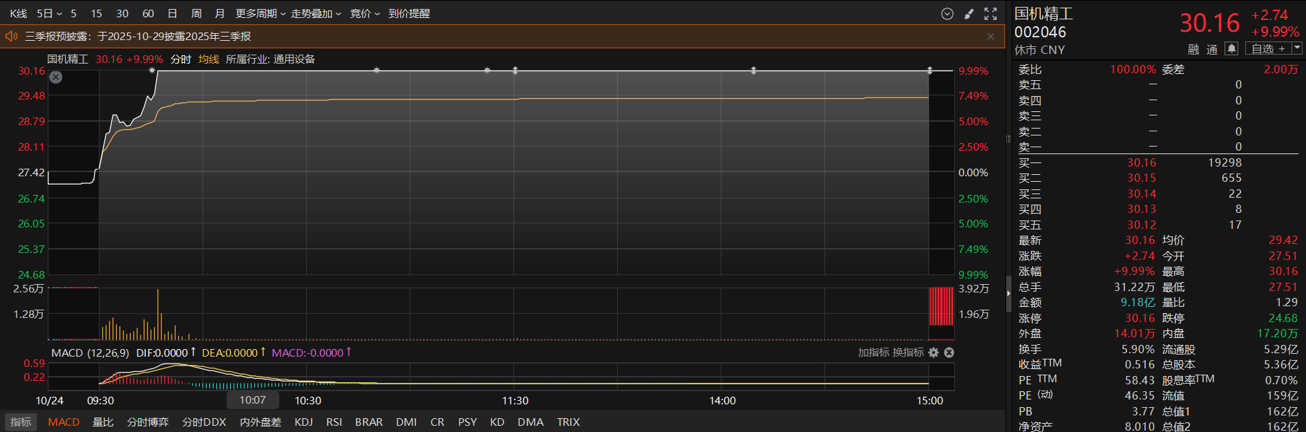 国机精工周五发布机构调研纪要表示,超硬材料磨具在芯片领域的国产替代空间较大。随着国内芯片产能扩张,以及企业产品线扩展、性能提升,未来仍具有较好的增长潜力。公司2024年超硬磨具业务收入5.8亿元左右,下游应用分半导体领域和非半导体(汽车、制冷、LED、工模具等)领域,其中用于半导体领域的产品近几年增长较为显著。二级市场上,国机精工周五收盘涨停。
