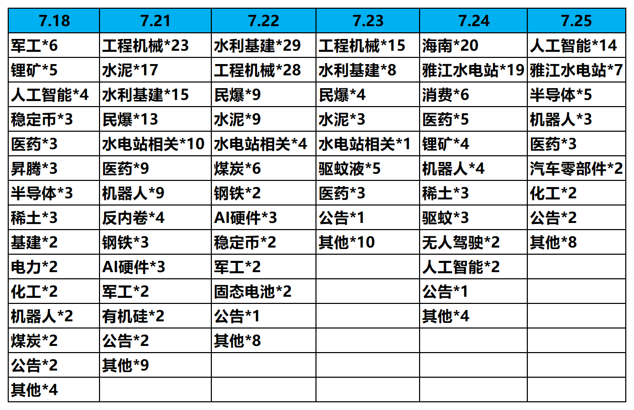 连板高度5板:3个5板,连板高度已经开始被压制了,下周想上6板感觉都挺难的,3连板是两个(彩虹集团和拓山重工),一个驱蚊概念一个雅江概念,雅江概念晋级的概率稍微大一点。