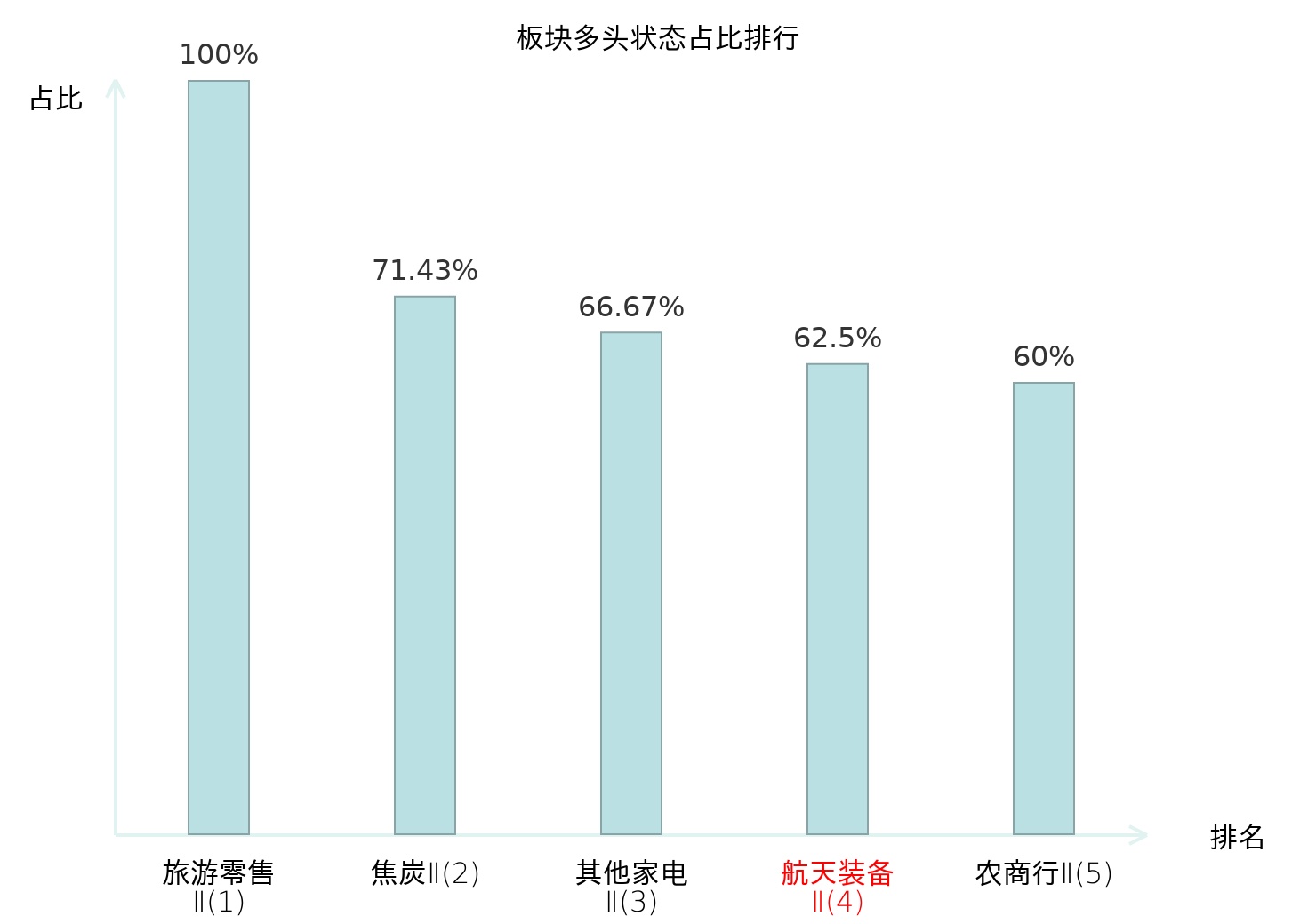 全市场所有行业板块中主力多头状态占比排名中,旅游零售Ⅱ板块位居第一。白酒Ⅱ板块名次提升最快,较昨日上升50位。