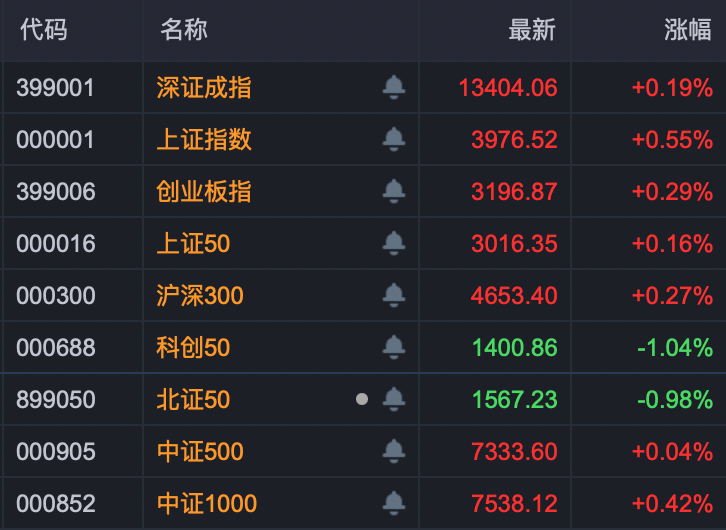 今日,A股探底回升,上证指数、深证成指、创业板指等早盘震荡调整,午后拉升翻红,科创50指数则险守1400点,市场成交小幅萎缩至2.13万亿元。