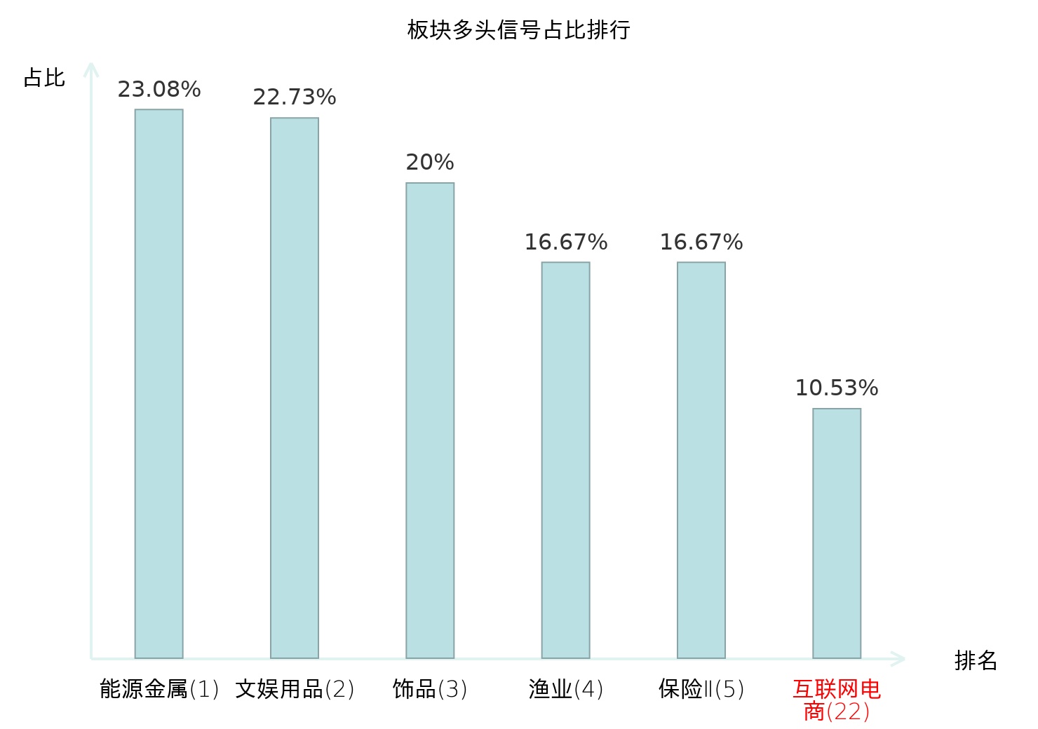 从主力宝信号数据分析,若羽臣所属的互联网电商板块中共有2只股票发出主力多头信号,主力多头信号占比在全行业中排名第22位,较昨日上升77位。排名的显著上升表明主力对互联网电商板块的买入意愿有所增强。全市场所有行业板块中,能源金属板块的主力多头信号占比最高,位居第一。保险Ⅱ板块名次提升最快,较昨日上升120位。这些变动揭示了主力资金在不同行业间的偏好调整,为投资者提供了市场趋势的重要参考。