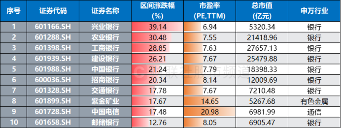 个股层面来看,不计算期间上市新股,累计共有3092股自去年11月8日以来至今录得收涨,“红盘率”近57.8%。其中,121股区间涨幅超100%,热景生物、联合化学、舒泰神、若羽臣、*ST宇顺录得涨幅前五名。若仅统计超5000亿市值的大盘权重股,不计算银行股,紫金矿业、中国电信、中国移动、长江电力、工业富联、中国石油、美的集团等股涨幅居前。