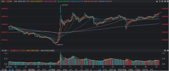 今日(7月8日),上证指数再度拉升,截至收盘,其收报于3497.48点,创去年11月8日以来新高。同时,其盘中一度升至3499.89点,逼近3500点关口。若仅以收盘数据计算,上证指数今日已刷新去年“924”行情以来收盘点位的最高峰值纪录。