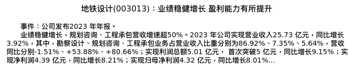 值得注意的是:2024年04月中国银河的龙天光分析师,首次发布关于地铁设计的研究报告,标题为:地铁设计(003013):业绩稳健增长 盈利能力有所提升。