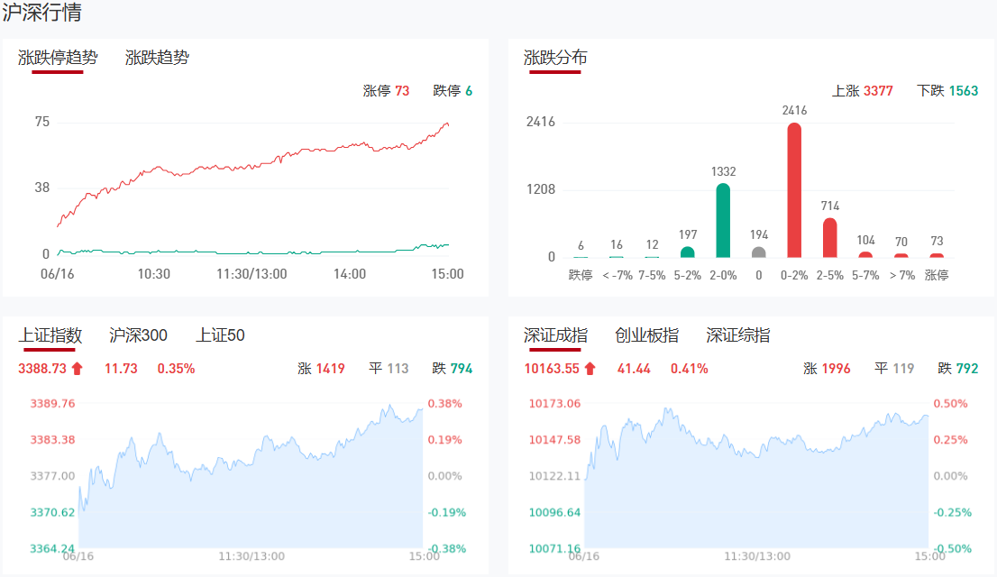 市场全天震荡反弹,创业板指领涨。沪深两市全天成交1.22万亿元,较上个交易日缩量2522亿元。盘面上,市场热点快速轮动,个股涨多跌少,全市场超3500只个股上涨。从板块来看,IP经济概念全天强势,光线传媒等多股涨停;稳定币概念再度走强,协鑫能科、恒生电子等涨停;化工板块反复活跃,金牛化工等涨停;油气股延续强势,准油股份涨停;下跌方面,足球概念震荡调整,共创草坪逼近跌停。