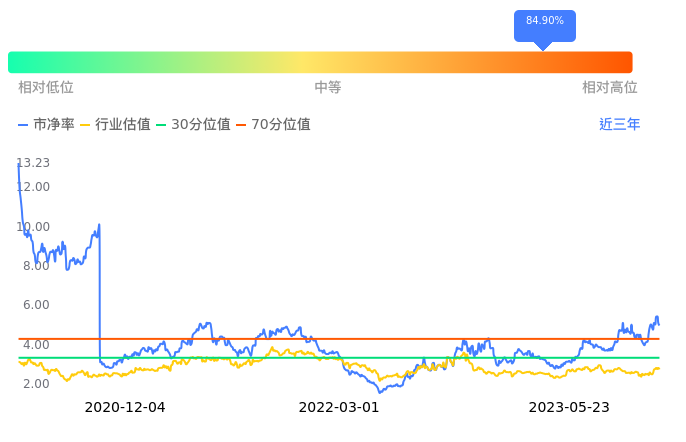 兆威机电当前市净率PB为5.02,在所属的电机中,市净率PB排18,前五名分别为大洋电机市净率1.50、卧龙电驱市净率1.74、凯中精密市净率2.19、迪贝电气市净率2.32、通达动力市净率2.41。兆威机电当前市净率PB为4.97,超过近3年84.90%的历史数据。