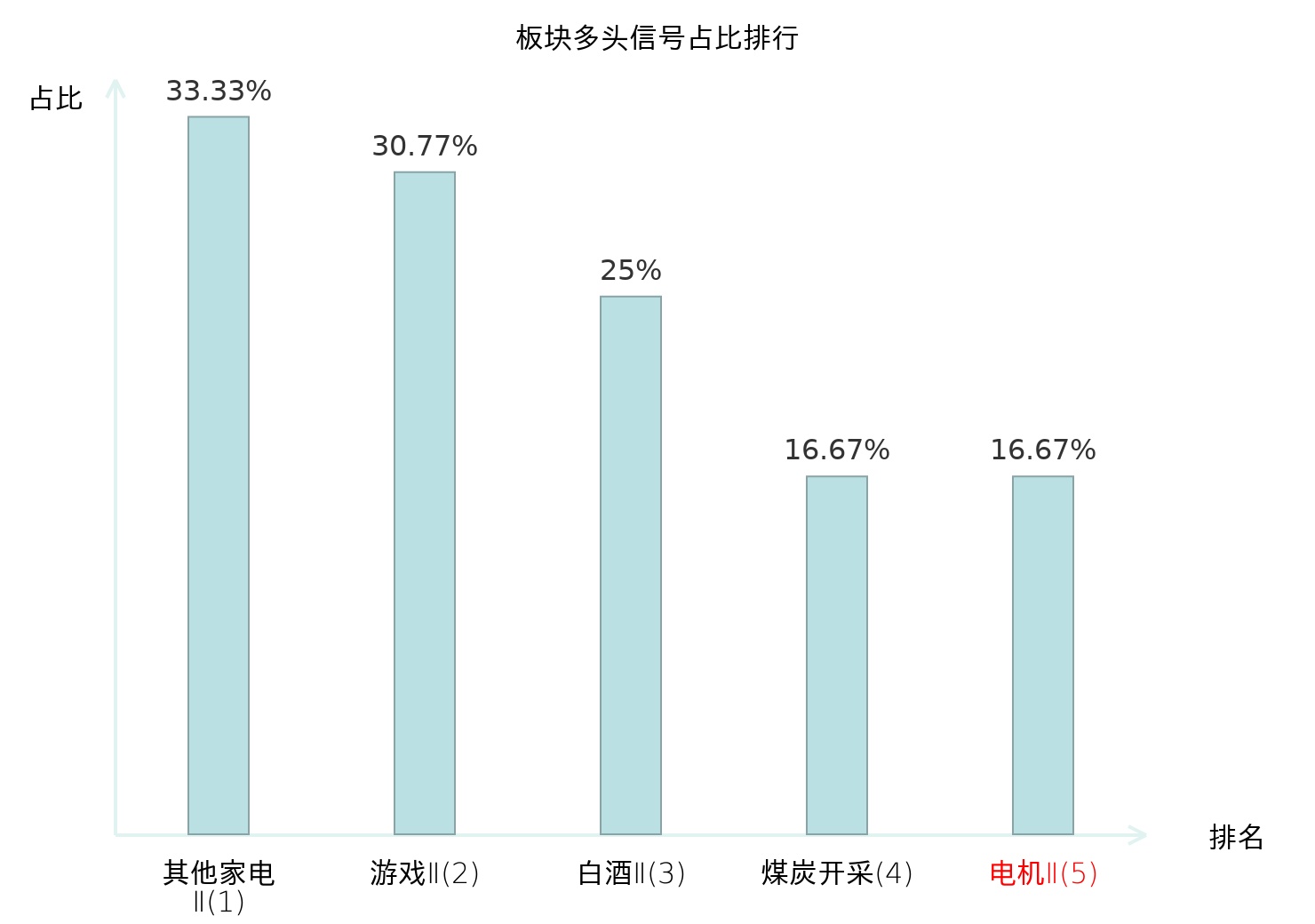 全市场所有行业板块中主力多头信号占比排名中,其他家电Ⅱ板块位居第一。其他家电Ⅱ板块名次提升最快,较昨日上升128位。