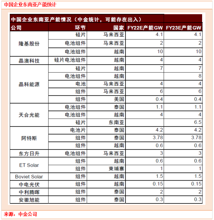 投资税收抵免(ITC)政策延期10年大幅提升美国需求持续性,随之产生大量的电池、硅片、辅材以及产线设备需求。