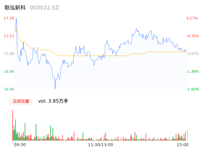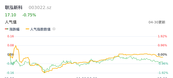 04月30日,联泓新科收报17.10,股价涨幅-0.75%,成交金额6572.40万元,换手率0.29%。