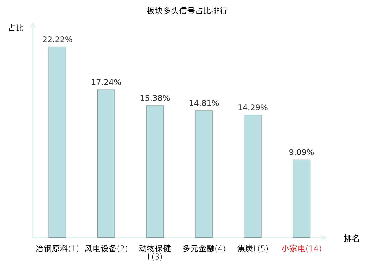从主力宝信号数据分析,彩虹集团所属的小家电板块中共2只股票发出主力多头信号,主力多头信号占比在全行业中排名第14位,较昨日上升24位。较高的排名表明主力对于该板块整体看多意愿较强;此次排名显著上升可能反映了主力对该板块态度的积极调整。全市场所有行业板块中主力多头信号占比排名中,冶钢原料板块位居第一。冶钢原料板块名次提升最快,较昨日上升118位。这些变动揭示了不同行业间主力资金动向的结构性变化,为投资者观察市场情绪分化及潜在配置方向提供了客观依据。