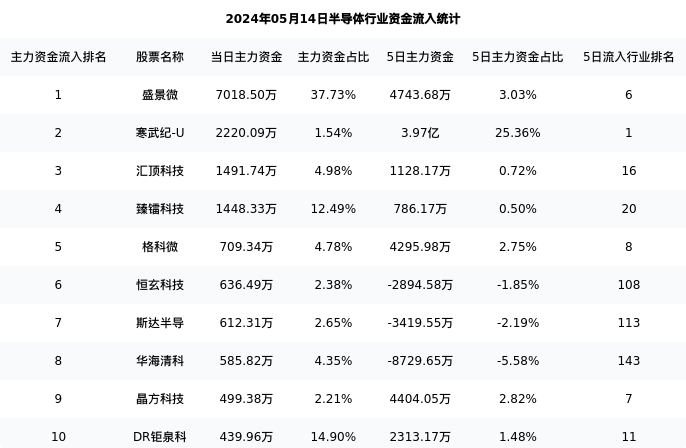 从主力资金流向来看,半导体行业今日主力资金流入73.27亿元,在所有申万二级行业中排名:10/131。