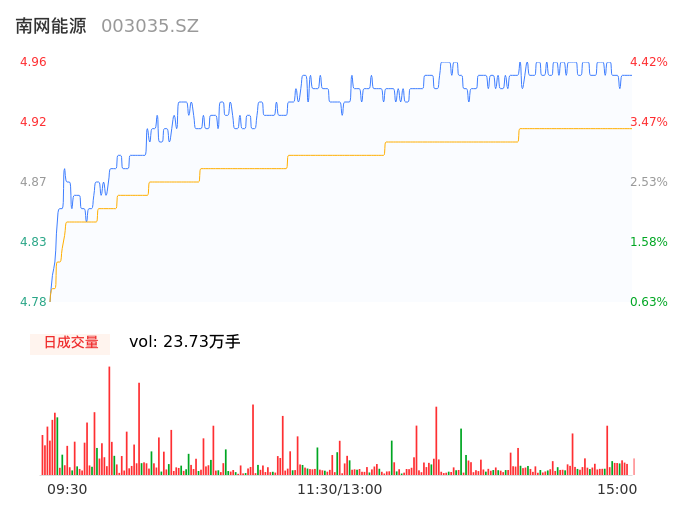04月29日,南网能源收报4.95,股价涨幅4.21%,成交金额1.17亿元,换手率1.05%。