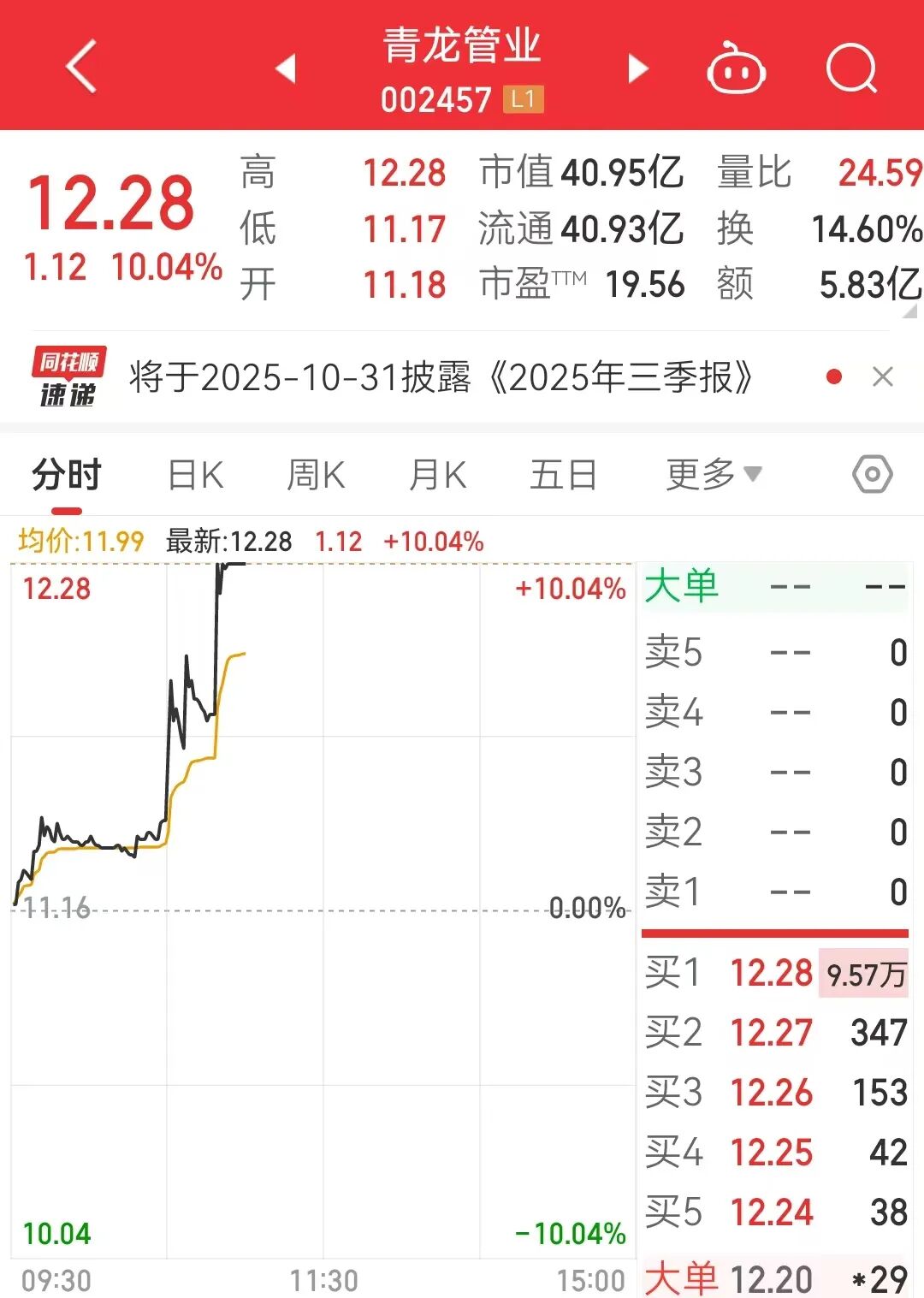 10月24日早间10:28,地下管网概念大幅拉升。概念股青龙管业(002457)率先封住涨停,盘中涨停板封单超过22万手。涨幅靠前的还有三和管桩、利通科技、韩建河山、金洲管道、东宏股份等。