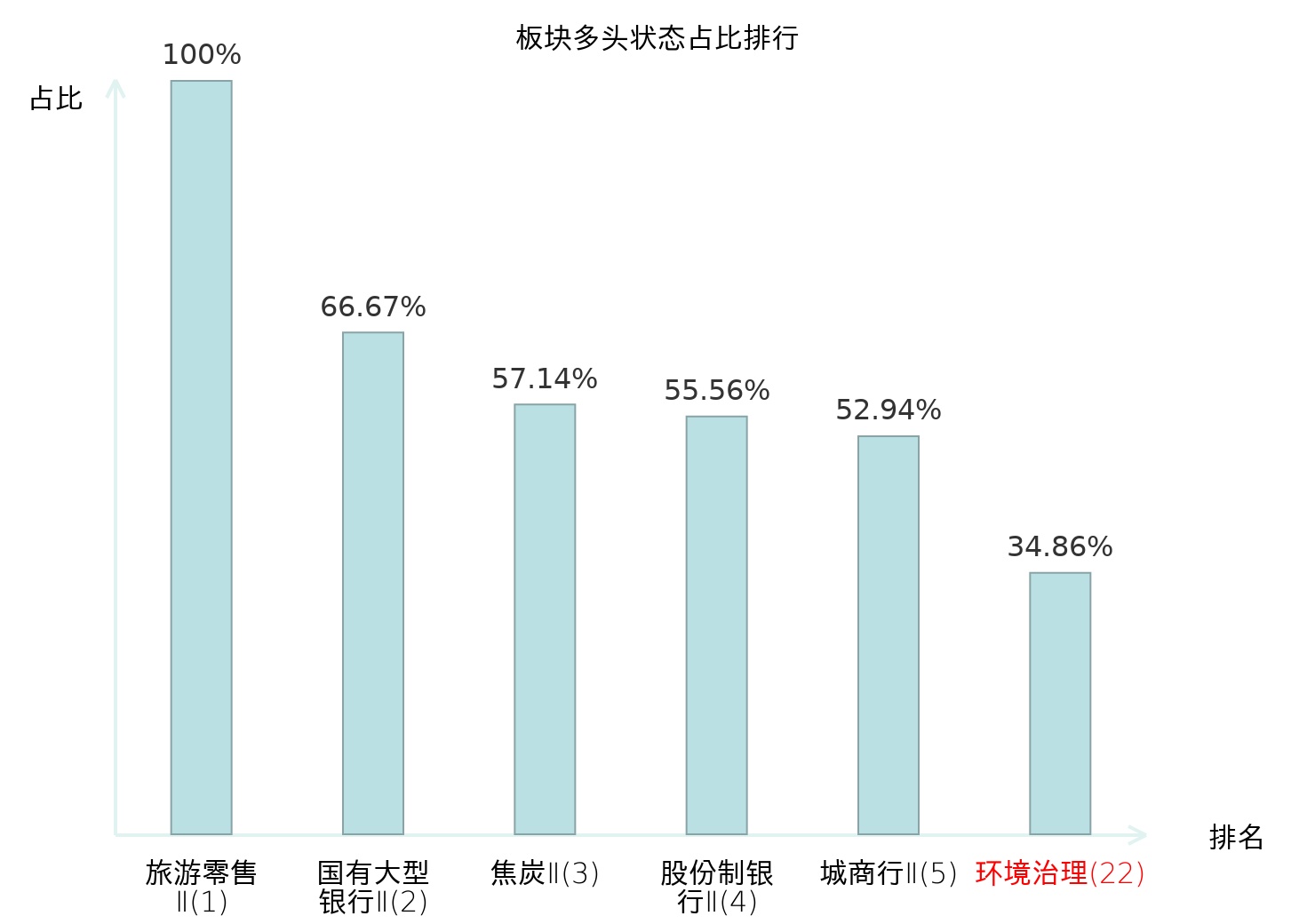 全市场所有行业板块中主力多头状态占比排名中,旅游零售Ⅱ板块位居第一。其他家电Ⅱ板块名次提升最快,较昨日上升101位。
