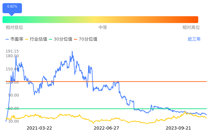 楚天龙当前市盈率PETTM为44.57,在所属的通信设备中,市盈率PETTM排31名。前5名分别为中天科技PETTM13.92、亨通光电PETTM16.88、中兴通讯PETTM17.68、长飞光纤PETTM19.76、长江通信PETTM20.23。从PETTM估值走势数据来看,楚天龙当前市盈率PETTM为44.57,超过近3年0.82%的历史数据。