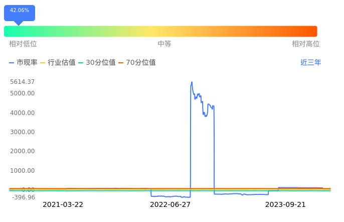 2023年09月21日,楚天龙下跌1.85%收于15.40,今日成交金额5600.99万元。下文将从市盈率PETTM、市净率PB、市现率3个角度去分析公司估值情况。