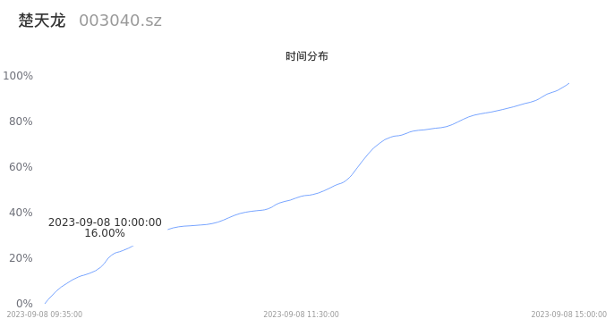 003040楚天龙2023年09月08日成交2.96万手,成交金额4927.31万元,相较昨日缩量1889手,换手率1.36%,成交清淡。