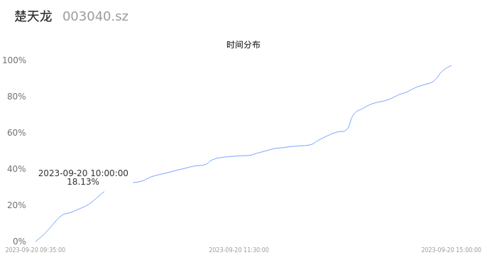 003040楚天龙2023年09月20日成交2.90万手,成交金额4573.70万元,相较昨日缩量8914手,换手率1.34%,成交清淡。