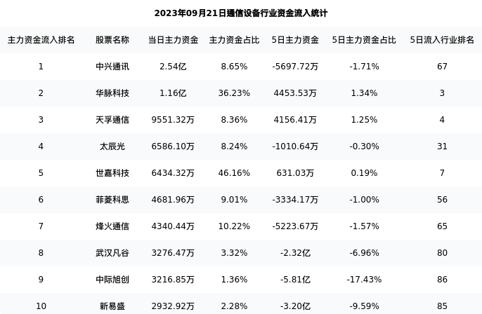 从主力资金流向来看,通信设备行业今日主力资金流入84.31亿元,在所有申万二级行业中排名:105/131。