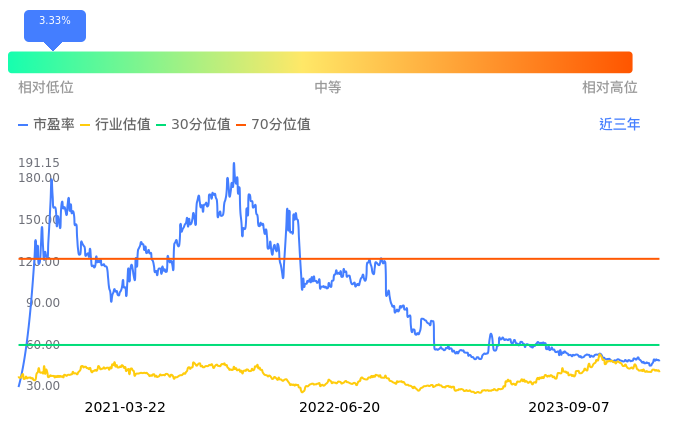 楚天龙当前市盈率PETTM为48.41,在所属的通信设备中,市盈率PETTM排35名。前5名分别为中天科技PETTM14.60、中兴通讯PETTM17.48、亨通光电PETTM17.58、长飞光纤PETTM20.02、长江通信PETTM21.28。从PETTM估值走势数据来看,楚天龙当前市盈率PETTM为48.41,超过近3年3.33%的历史数据。