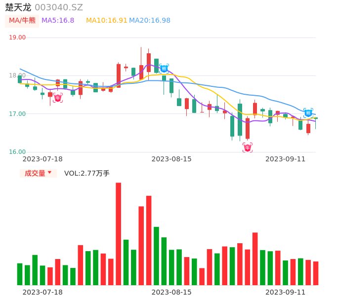 09月11日,楚天龙收报16.87,股价涨幅0.84%,成交金额4653.18万元,换手率1.28%。