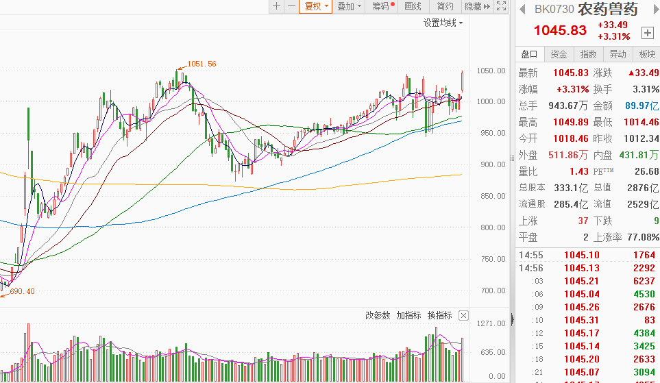 事件驱动:消息面上,进入3月,春耕备货需求释放,甲维盐、毒死蜱、烯草酮、丁草胺、乙草胺、草甘膦、多菌灵、戊唑醇等多款农药产品价格上涨。据中国农药工业协会统计,3月农药价格指数(CAPI)为79.38,环比上涨1.61%。农药、化肥概念股震荡拉升,中农联合、赤天化、先达股份涨停,颖泰生物涨超10%,江山股份、中旗股份、美邦股份、绿亨科技、润丰股份涨超5%。