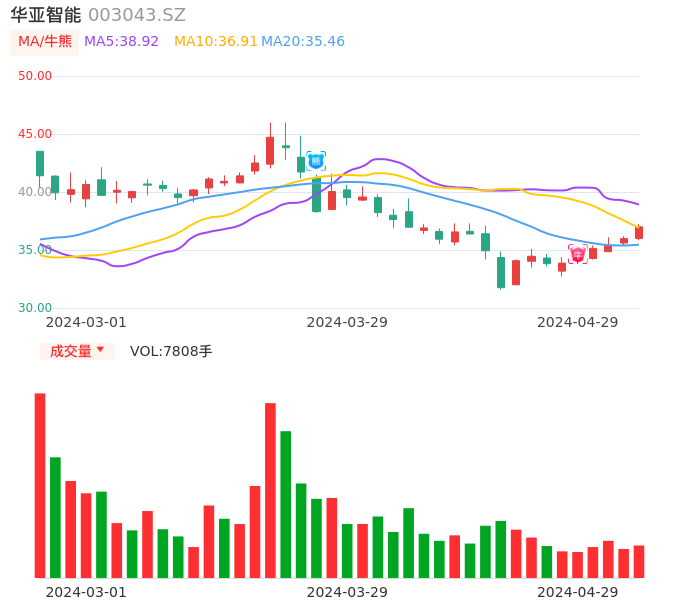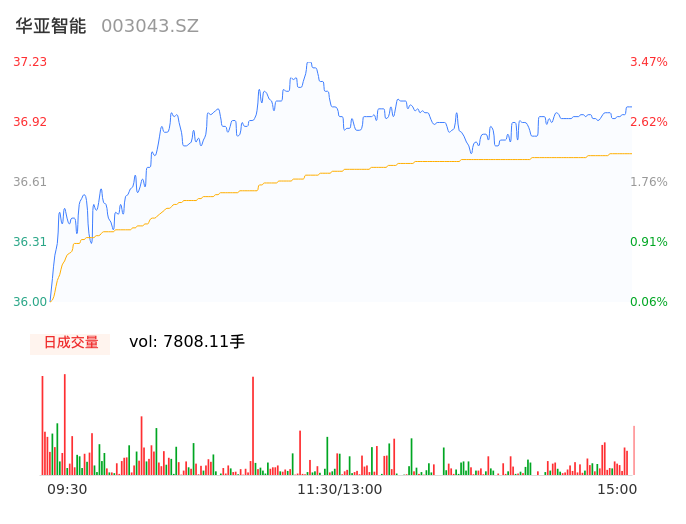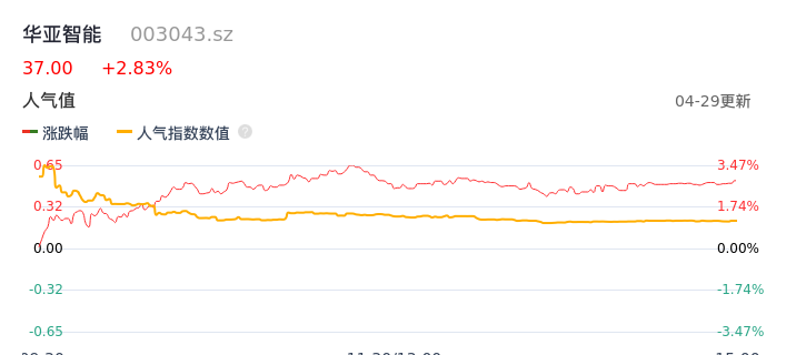 04月29日,华亚智能收报37.00,股价涨幅2.83%,成交金额2870.73万元,换手率1.60%。