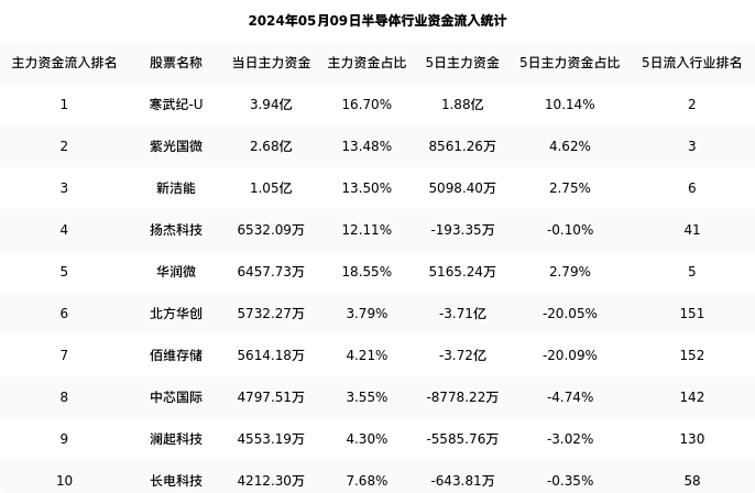 从主力资金流向来看,半导体行业今日主力资金流入125.01亿元,在所有申万二级行业中排名:52/131。